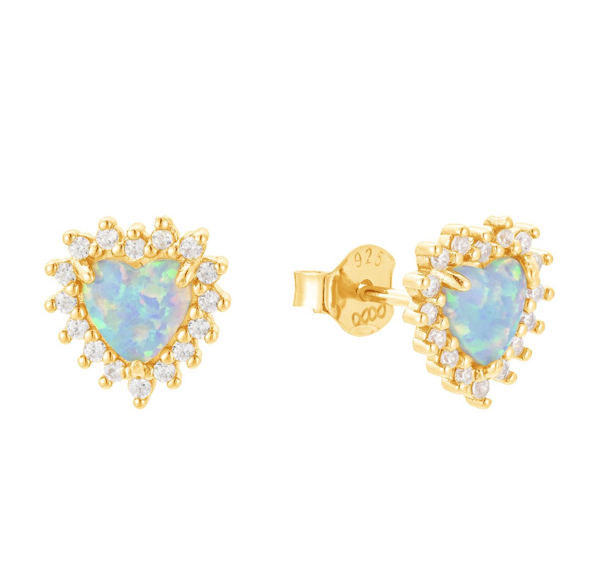 Opal Halo Heart Stud Earrings/18K Yellow Gold Vermeil with Opal & Cubic Zirconia