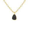 We have encapsulated a beautiful flat Black Onyx pendant to nestle perfectly on your chest, combined with a stunning Paperclip Necklace.