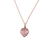 A truly beautiful 3 Carat AAA Rose Quartz with a thick 18k Rose Gold Vermeil border, delicately caressing the heart stone, resting on the heart.